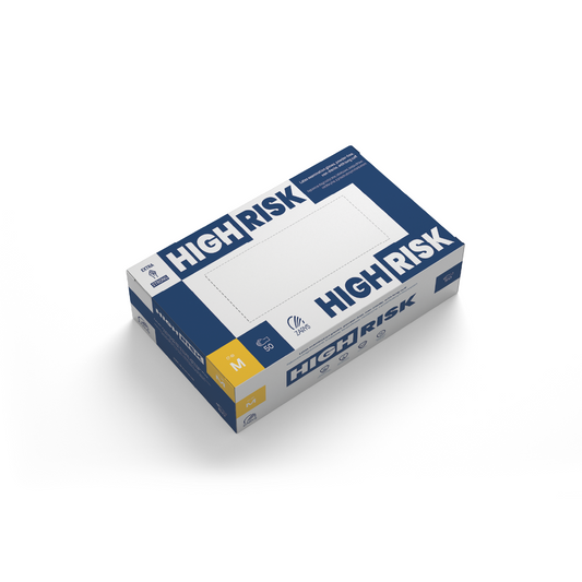 HIGH RISK - Gants latex bleus à HAUT RISQUE, non poudrés - Manchette longues de 30cm - Boite de 50 pièces