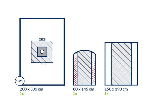 Kit Uro/Gynécologie avec champ adhésif, champ fenêtré, ruban OP, couvre membres, housse mayo et housse de table - 1 kit