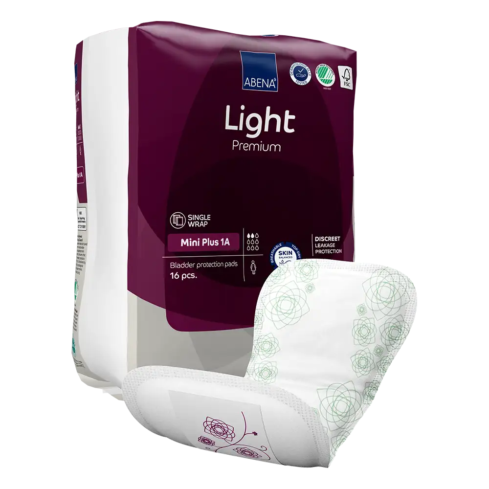 - ABENA Light est notre gamme Premium de protections anatomiques pour l'incontinence légère à modérée avec bande adhésive.