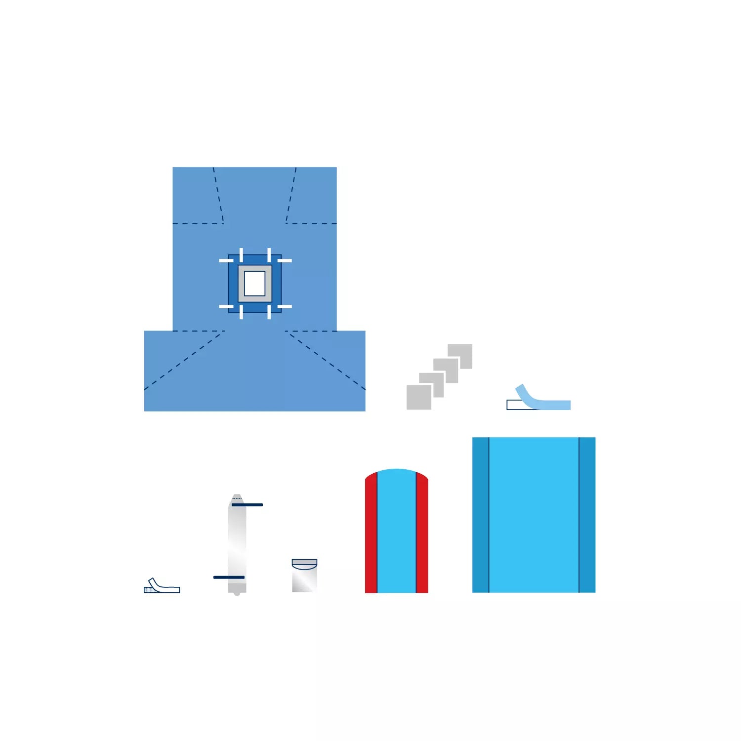 Bande renforcée en laminé bicouche absorbant et imperméable et en non-tissé hautement absorbant dans la zone renforcée, avec jambières intégrées et porte-câbles, avec fenêtrage adhésif de 25 cm x 30 cm. |