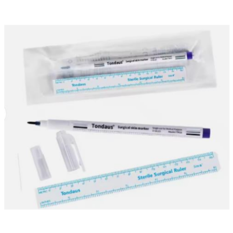 Les marqueurs cutanés chirurgicaux TONDAUS® sont des outils indispensables pour assurer une précision optimale lors des interventions chirurgicales. Conçus pour répondre aux exigences des professionnels de santé, ils permettent de délimiter facilement et avec exactitude les zones d’incision avant ou pendant une opération. Leur encre violette de gentiane, résistante au frottement et non toxique, garantit une excellente visibilité sur la peau tout au long de la procédure, tout en assurant une utilisation hygiénique et pratique.