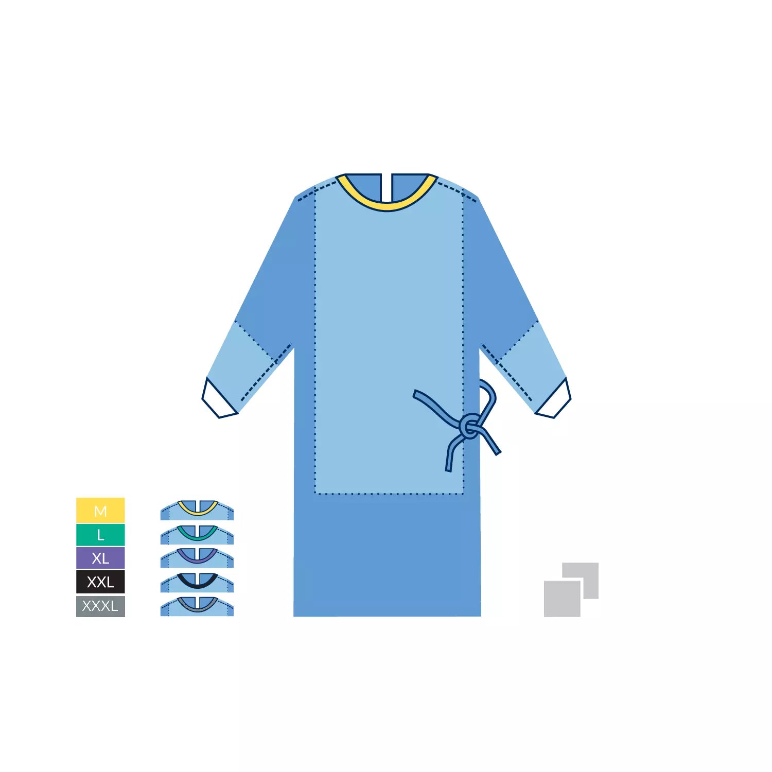 Casaque chirurgicale jetable standard plus 40 g/m2 + 2 serviettes absorbantes - Stérile