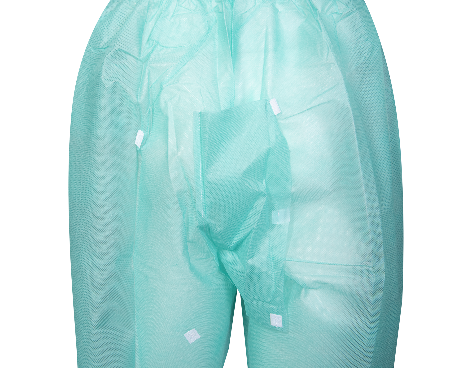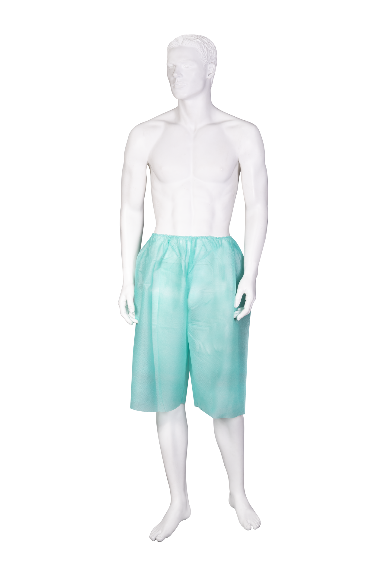 Short non stérile, respirant, avec une fente, en polypropylène non tissé, d'un poids de 35 g/m². Dispositif médical à usage unique porté par les patients pendant la procédure de coloscopie.